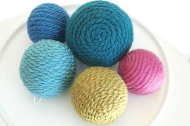 Εναλλακτικά μπορείτε με ένα πιστόλι σιλικόνης να κολλήσετε περιμετρικά, νήμα σε διάφορα χρώματα, δημιουργώντας χριστουγεννιάτικες μπάλες που ταιριάζουν τόσο σε κλασσικό όσο και σε μοντέρνο στολισμό...